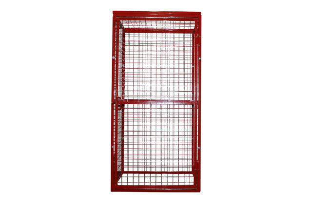 Knock-down cages in red powder-coat finish, available in a range of sizes, with padlock facility and floor-fixing holes - ideal for secure storage from the Grenadier® range.