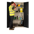 - Robust steel construction, welded frame with reinforced doors