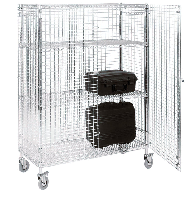 - Eclipse chrome wire shelving enclosed in a tough, durable chrome wire cage