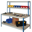 A rugged and high-capacity rivet-assembled workstation with full undershelf storage, ideal for industrial environments, production lines and busy workshops.No nuts & bolts required the system simply taps together with the use of a hammer/mallet