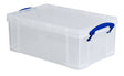 Durable 9-litre clear storage box with lid and locking handles. Ideal for storage, transport and organisation in home, office or warehouse environments.