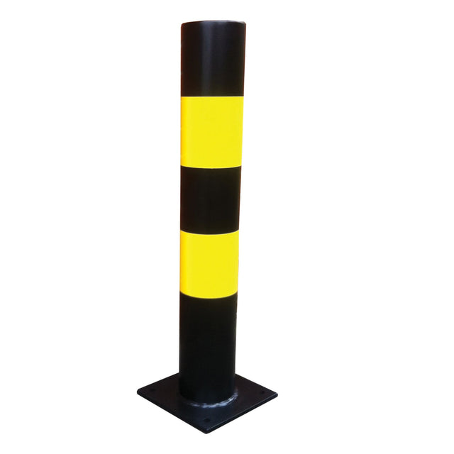 Heavy Duty High Vis Bollards - Black Bollard with Yellow Stripe / 60 dia. x 1000 mm / Bolt Down 1500mm overall length is backordered and will ship as soon as it is back in stock.
